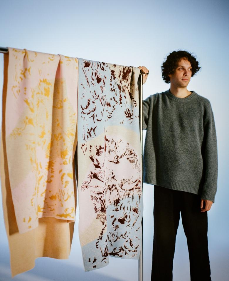 Mikuláš Brukner, textilní výtvarník a spoluzakladatel studia KNIT-ART, říká: „Na pleteninách pro Javorinu mě fascinovala možnost propojit knitwear s hmotou masivního dřeva. Chtěl jsem, aby textilie byla ve vizuálním dialogu s materiálem nábytku a jeho tvary. Vizuální jazyk kolekce propojuje rukopis JAVORINA s mým vlastním, který rozehrává jemné odstíny barev kontrastními akcenty.“