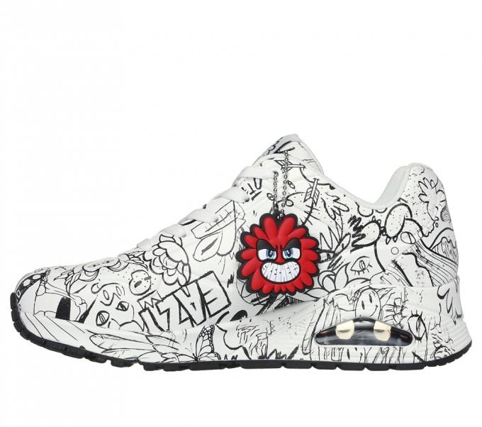 Módní tenisky Skechers Uno – Process Sketch čerpající inspiraci z umělcových hrubých skic, se pyšní syntetickým svrškem z durabucku, zdobeným typickými „čmáranicemi“ od VEXXe. Vybavené stélkou Skechers Air-Cooled Memory Foam® a viditelnou mezipodešví Skech-Air® s inovativním vzduchovým odpružením, jsou zárukou pohodlí a stylového vzhledu.