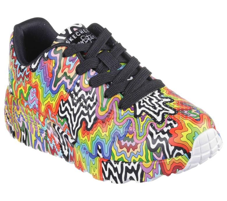 Legendární vícebarevný vzor kapání od Jen Stark, který bleskově zmizel z pultů, se vrací v miniaturizované podobě! Model Skechers x Jen Stark: UNO LITE, s jeho charakteristickým hypnotizujícím vzorem rozprostřeným po celé spodní části z durabuckového materiálu, je jako stvořený pro budoucí generace umělců. Tato šněrovací dívčí teniska se pyšní nejen perfektně perforovaným svrškem, ale také pohodlnou vložkou Skechers Air-Cooled Memory Foam® a trendově tvarovanou platformovou podešví.