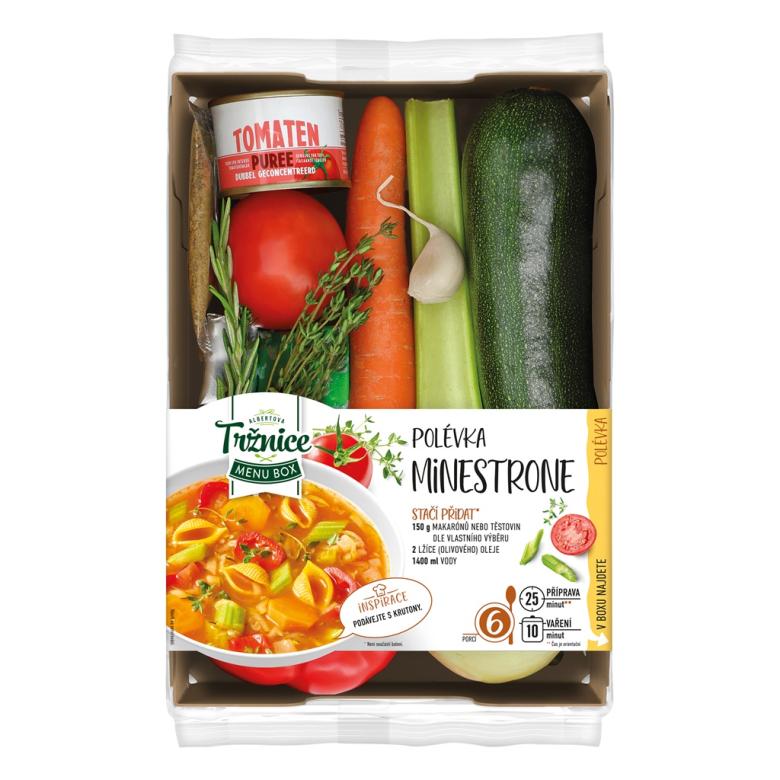 Zažijte chuť Itálie přímo u vás doma! Minestrone – lehká, a přitom vydatná polévka plná čerstvé zeleniny a voňavých bylinek. Připravte si ji snadno a rychle díky pečlivě sestavenému Menu boxu od Alberta. Cena: 79,90 Kč