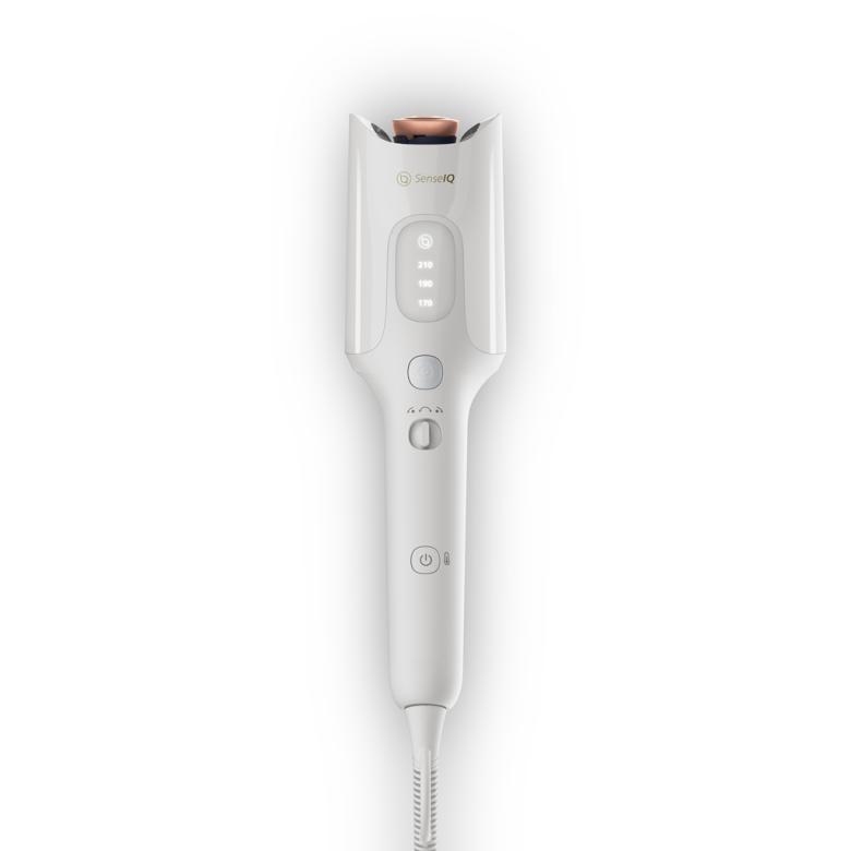 Výhodou je, že kulma se nahřeje velmi rychle a během půl minuty je připravena k použití. Režim SenseIQ výrazně usnadňuje práci, protože automaticky přizpůsobí kombinaci teploty a času konkrétnímu prameni a není nutné provádět ruční nastavení. Pramen střední tloušťky se natočí přibližně za deset sekund a výsledek je rovnoměrný a stabilní.