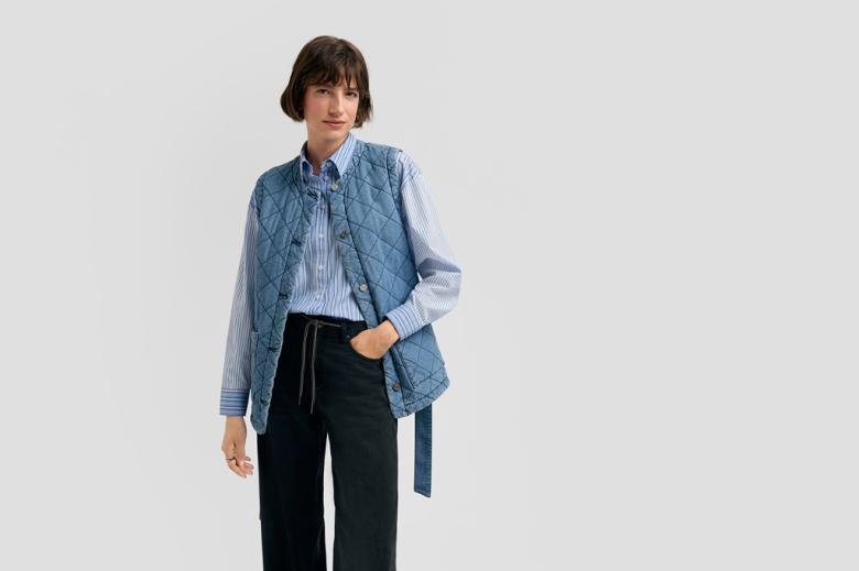 Kalhoty, košile a vesta – zní vám to jako obyčejná kancelářská uniforma? Opak je ale pravdou! I z klasických kousků můžete vyčarovat stylový outfit, stačí se poohlédnout po jejich moderních variantách. V prošívané denimové vestě s výraznými kapsami, košili s jemným proužkem a širokých kalhotách rozhodně nudně vypadat nebudete. Pruhovanou košili můžete vyměnit za tradiční bílou košili s kapsami v netradiční zkrácené délce. Ta se bude hodit i k elegantnímu černomodrému kostýmku, šedému kalhotovému kompletu i tmavě modrému setu sukně a jednoduché bundičky na knoflíky.