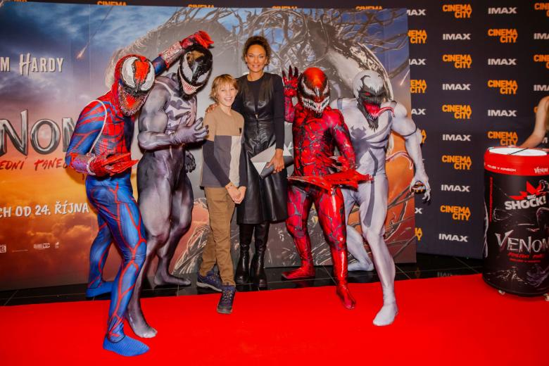 Již tradičně doprovázeli české celebrity na premiéru tematicky převlečení cosplayeři, kteří společně s nimi pózovali před foto stěnou. Tentokráte byli v trochu větší převaze a jejich výrazy nevypadali úplně přátelsky. Mezi mimozemské symbionty se bez váhání postavila vysmátá Anna Dvořáková, která přišla na premiéru s influencerským kolegou. Jedna z velmi nadějných současných mladých zpěvaček Elizabeth Kopecká, si jako velká filmová fanynka také nenechala nového Venoma ujít. Kamila Nývltová, která poprvé představila svého nového přítele minulý týden na křtu své nové kuchařky, s ním společně vyrazila i do kina. Velice stydlivě se se čtyřmi mimozemšťany vyfotil model a influencer Martin Carev.